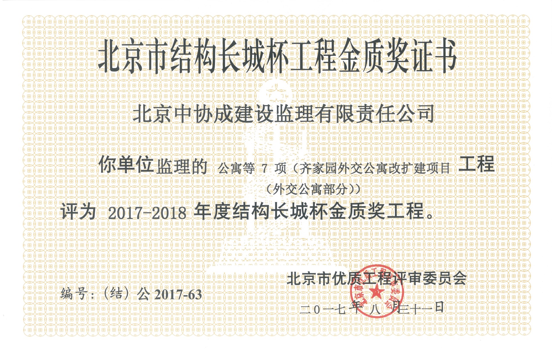 2017-2018公寓等7项(齐家园外交公寓改扩建项目外交公寓部分)结构长城杯金质奖