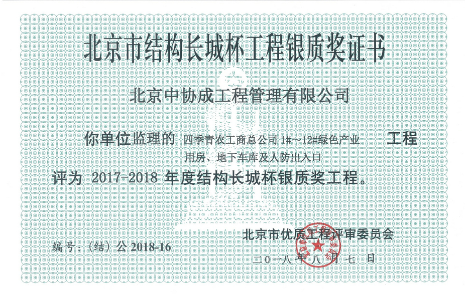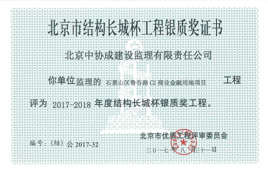 2017-2018石景山区鲁谷路C2商业金融用地项目结构长城杯银质奖