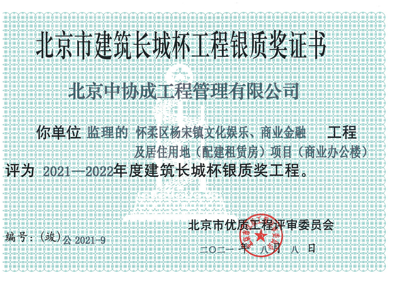 2021-2022年度建筑长城杯银质奖-怀柔区杨宋镇文化娱乐、商业金融及居住用地项目