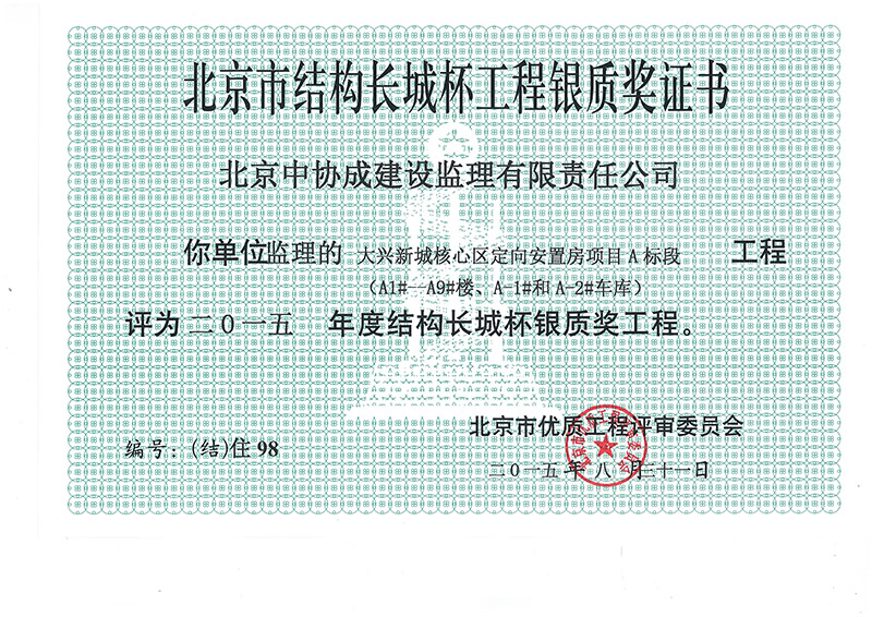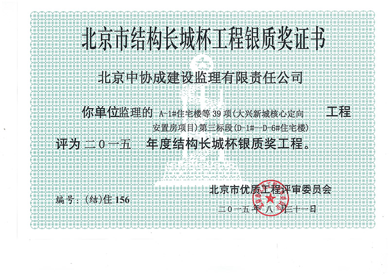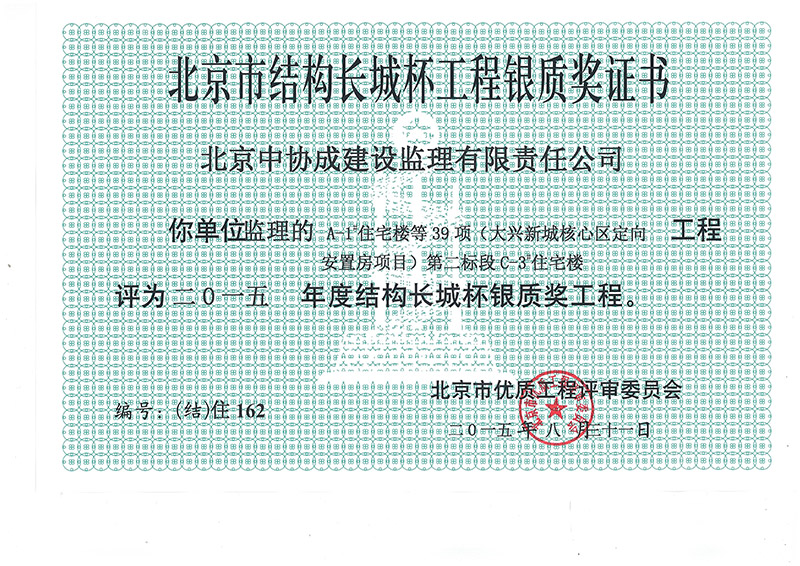 2015A-1#住宅楼等39项结构长城杯银奖(2)