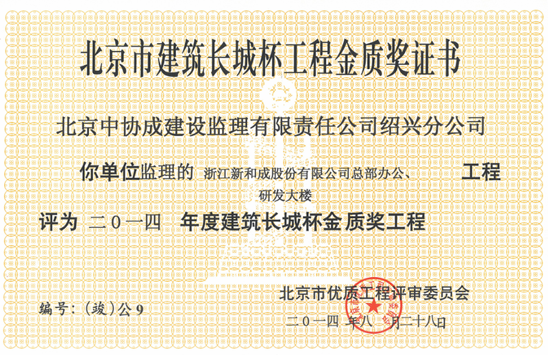 2017-2018剧场及配套办公等2项(北京市文化中心)结构长城杯金质奖