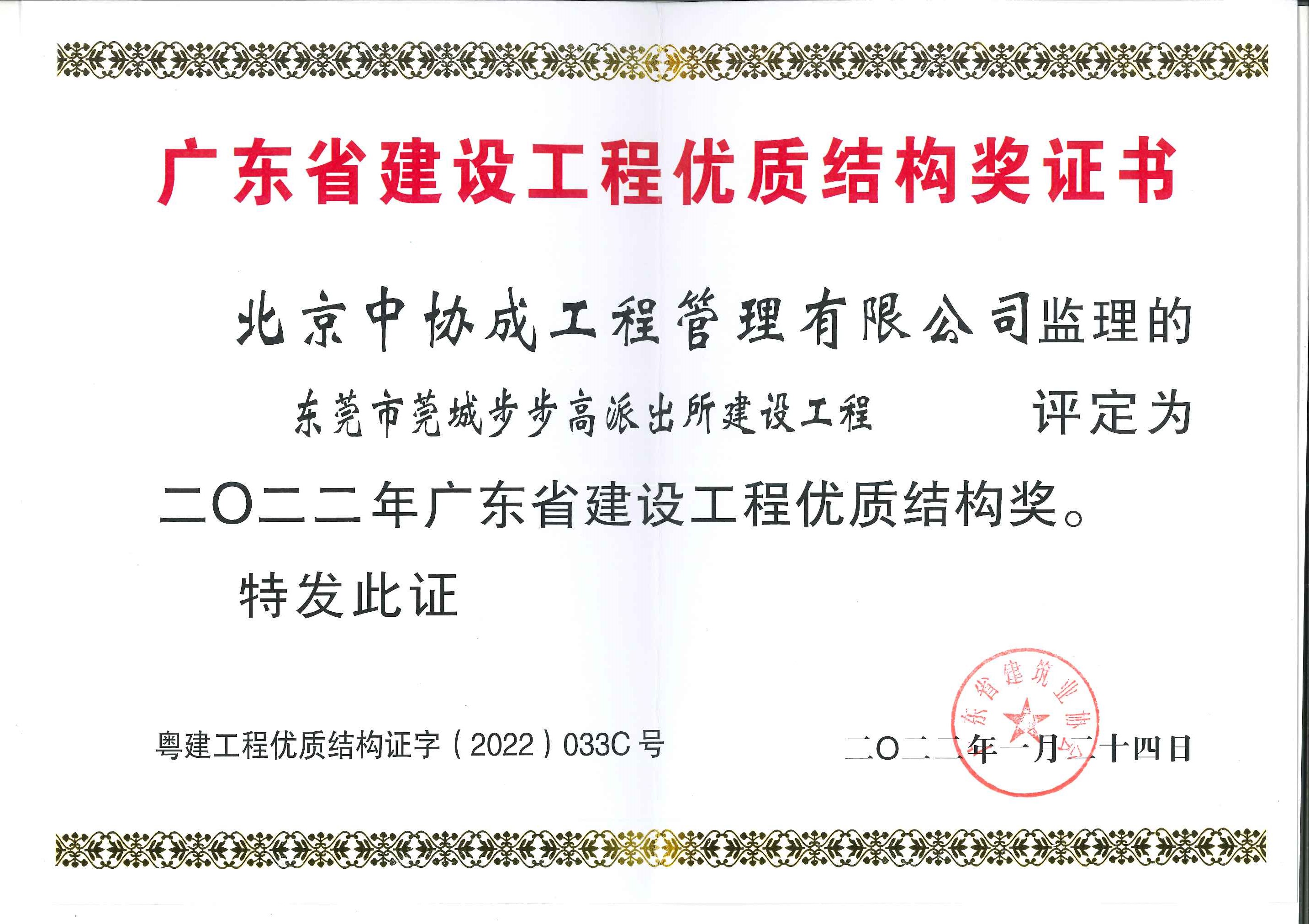 2023年度广东省建设工程优质奖-东莞市莞城步步高派出所建设工程荣誉证书