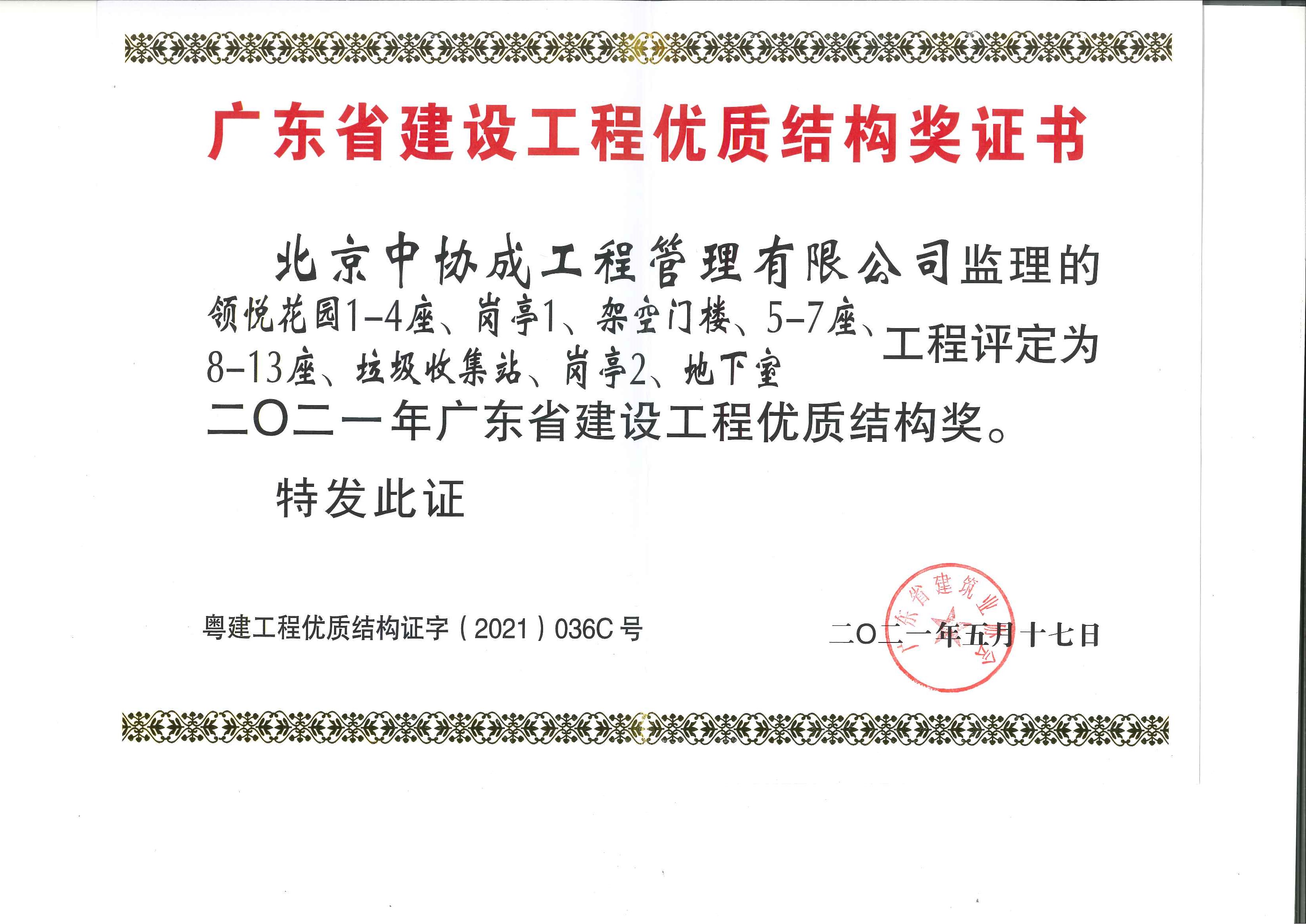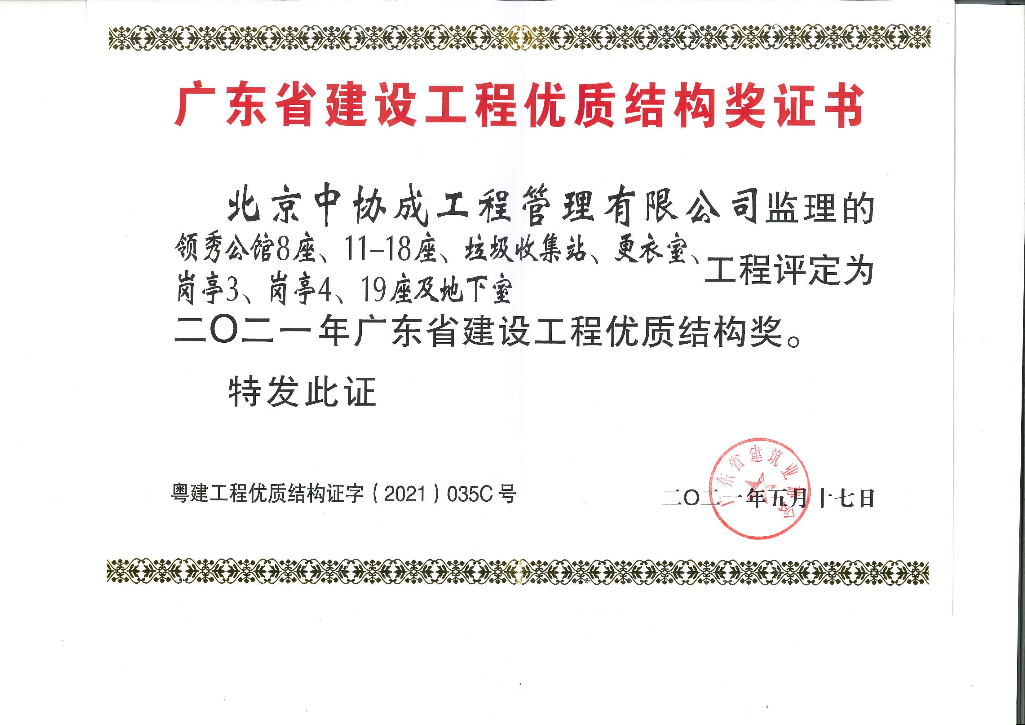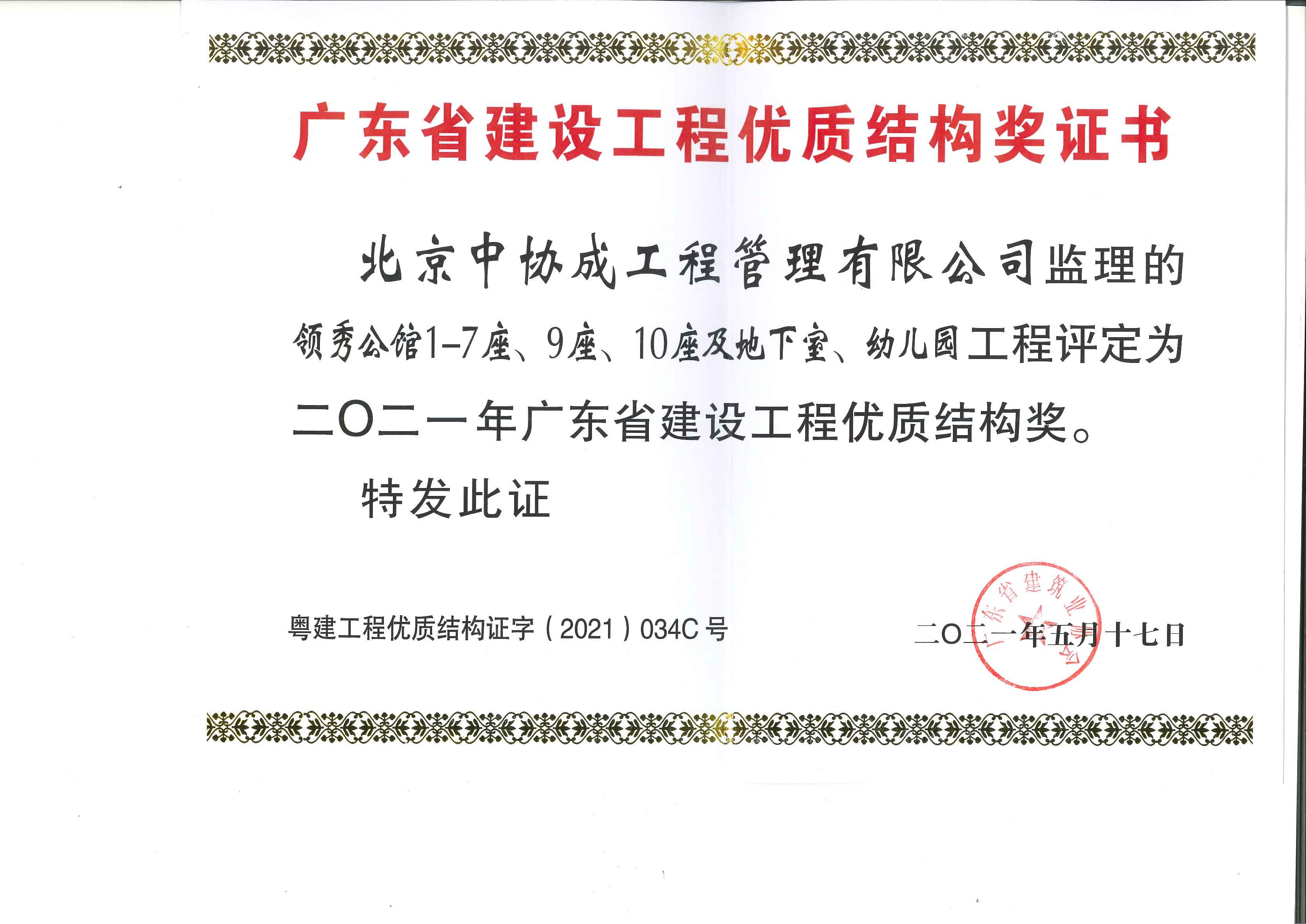 领秀公馆8座等工程2021年广东省建设工程优质结构奖