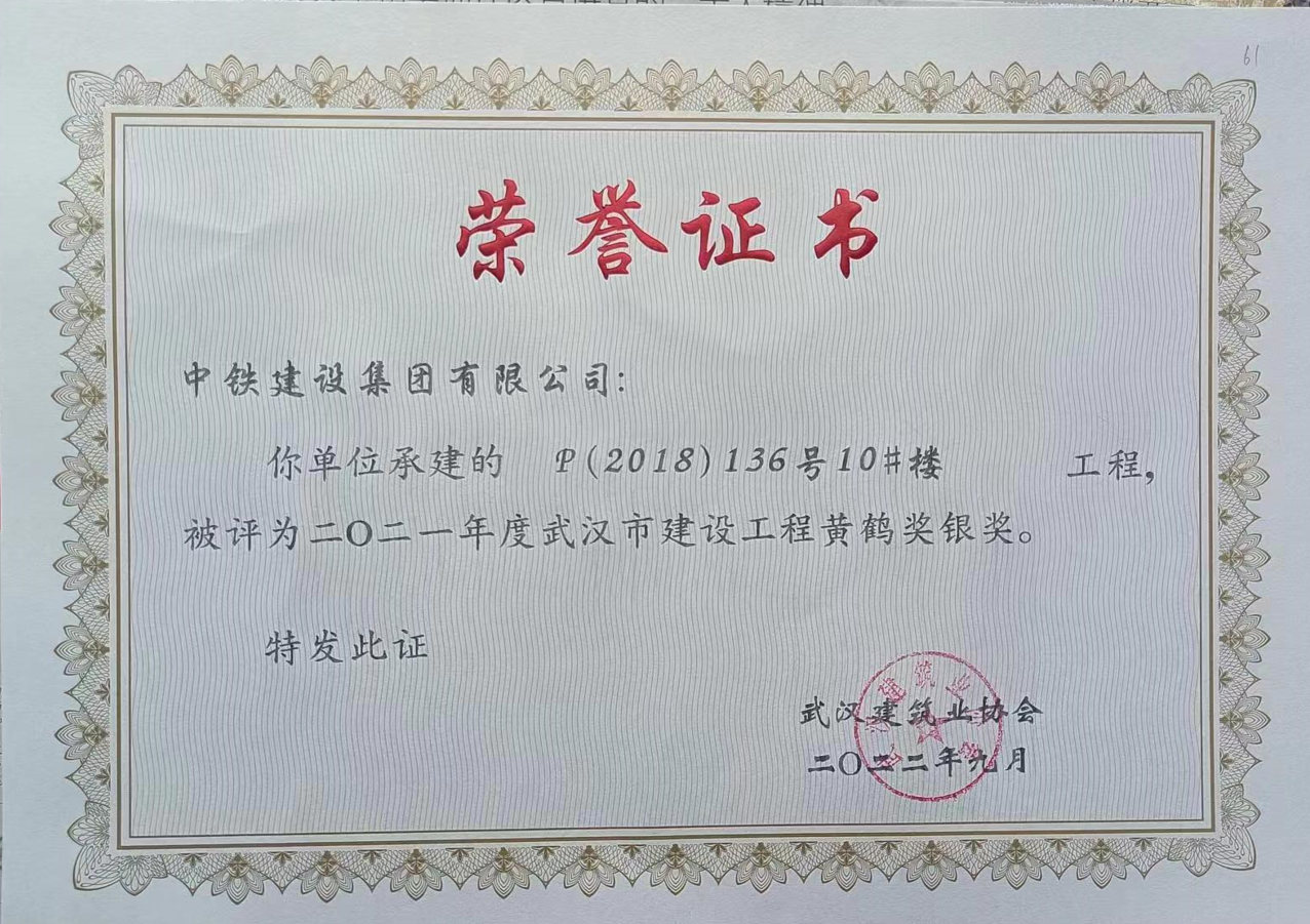二〇二一年度武汉市建设工程黄鹤奖银奖-P(2018)136号10#楼工程
