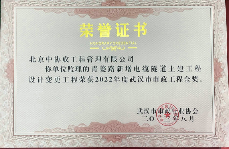2022年度武汉市市政工程金奖-青菱路新增电缆隧道土建工程设计变更工程