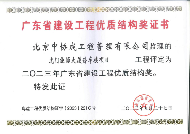 二〇二三年广东省建设工程优质结构奖-虎门能源大厦停车楼项目