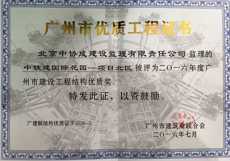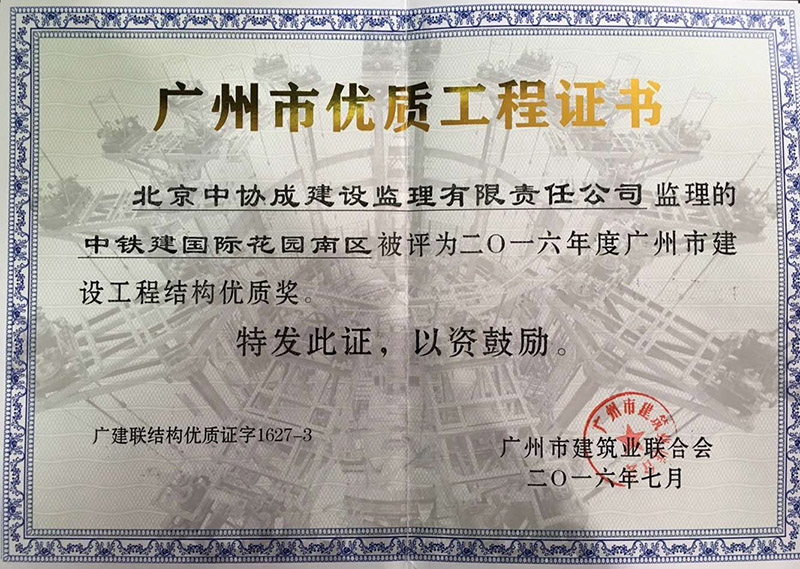 中铁建江门总部基地项目2022年广东省建设工程优质结构奖
