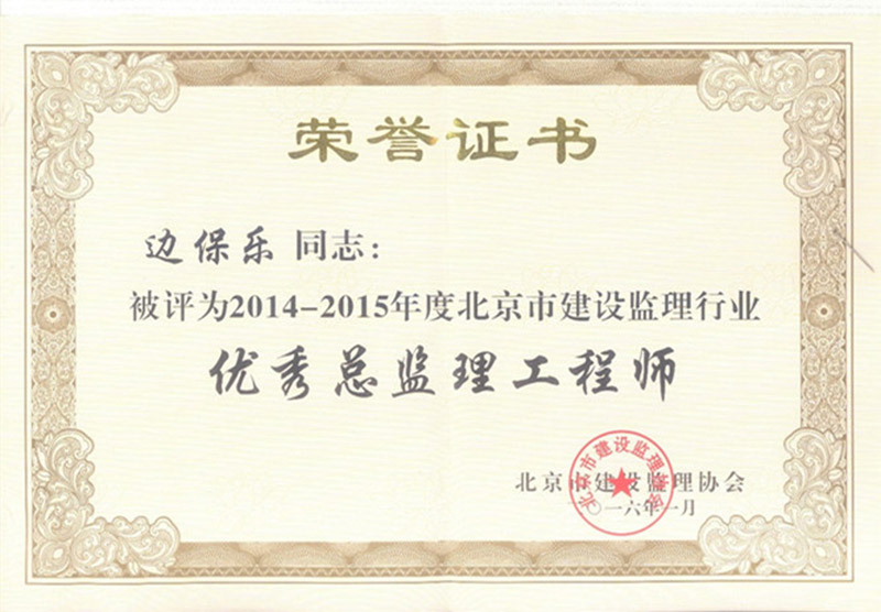 2014-2015年度优秀监理工程师-边保乐
