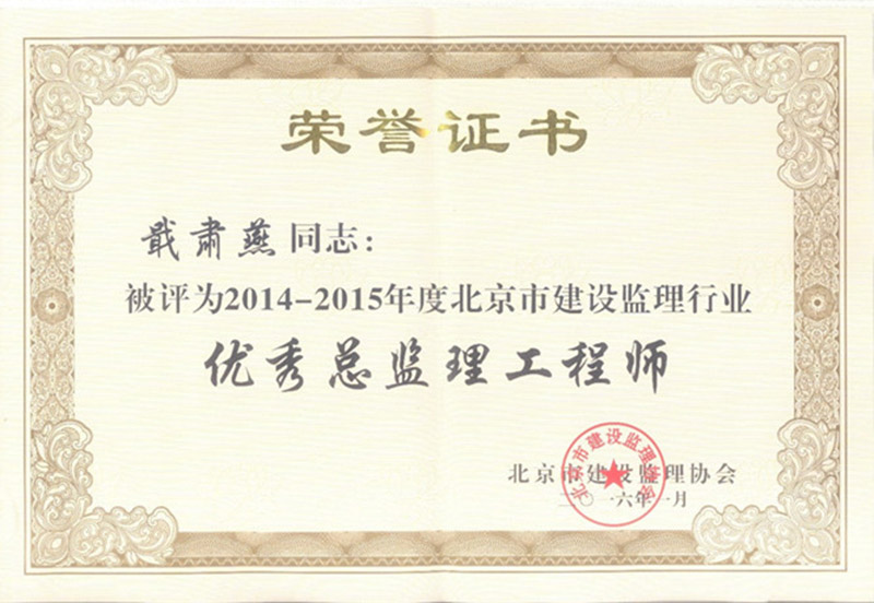 2014-2015年度优秀监理工程师-戢肃燕