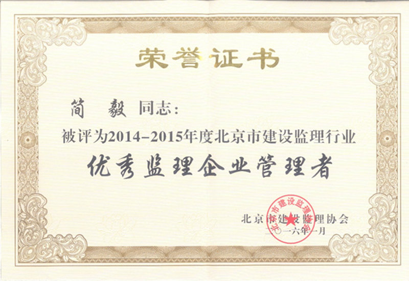 2014-2015年度优秀监理企业管理者-简毅