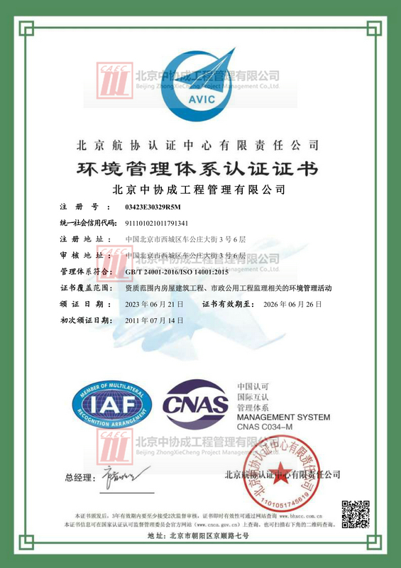 环境管理体系认证证书