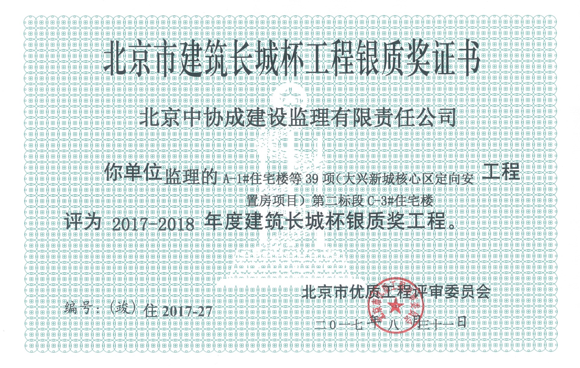2017-2018大兴安置房第二标段C-3#住宅楼建筑长城杯银质奖