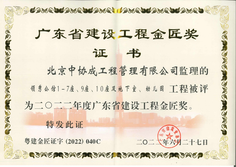 领秀公馆1-7座等工程2022年度广东省建设工程金匠奖
