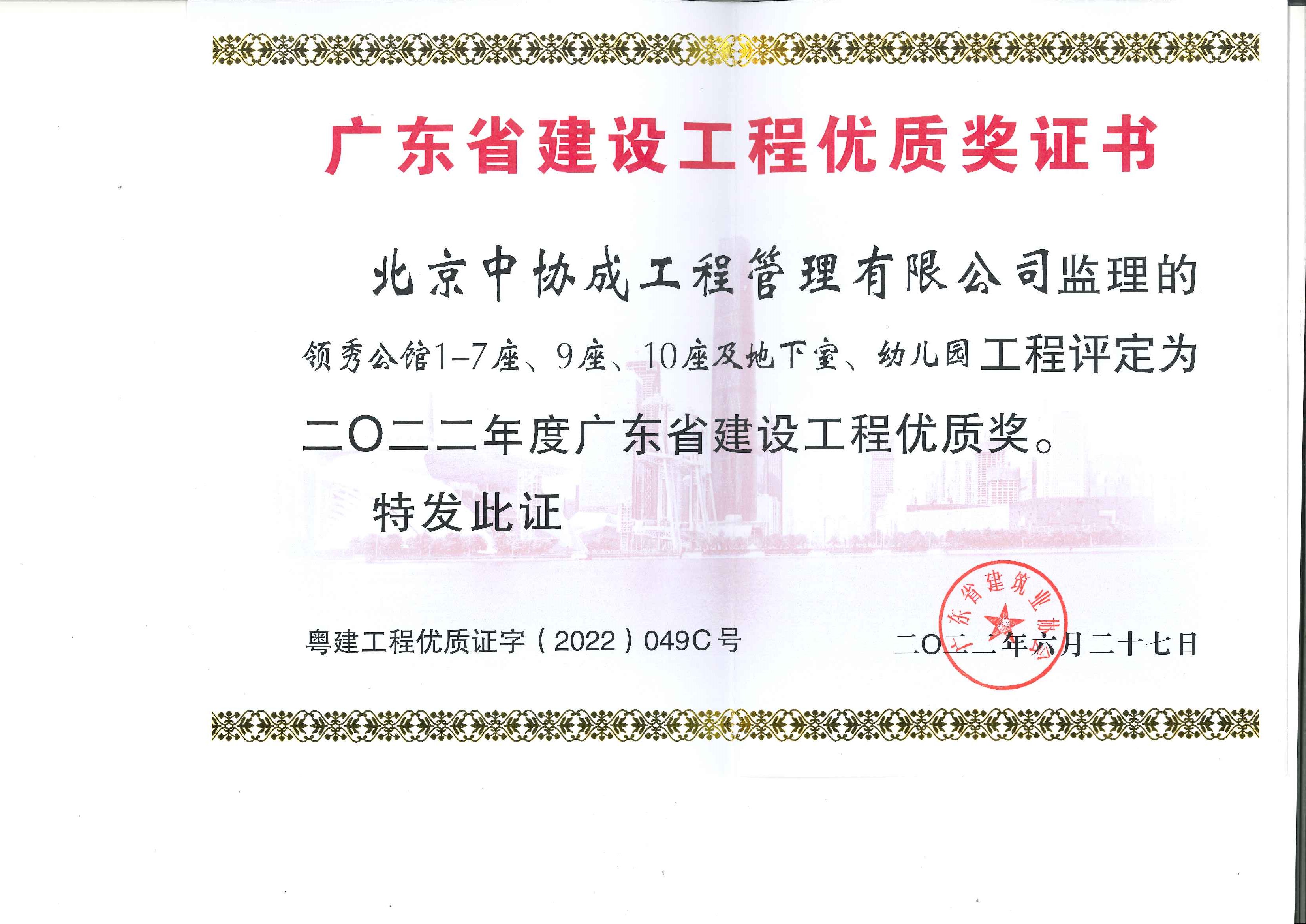 领秀公馆1-7座等工程2022年度广东省建设工程优质奖