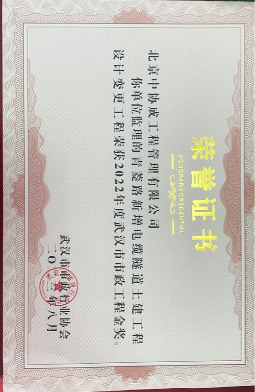 2022年度武汉市市政工程金奖-青菱路新增电缆隧道土建工程设计变更工程