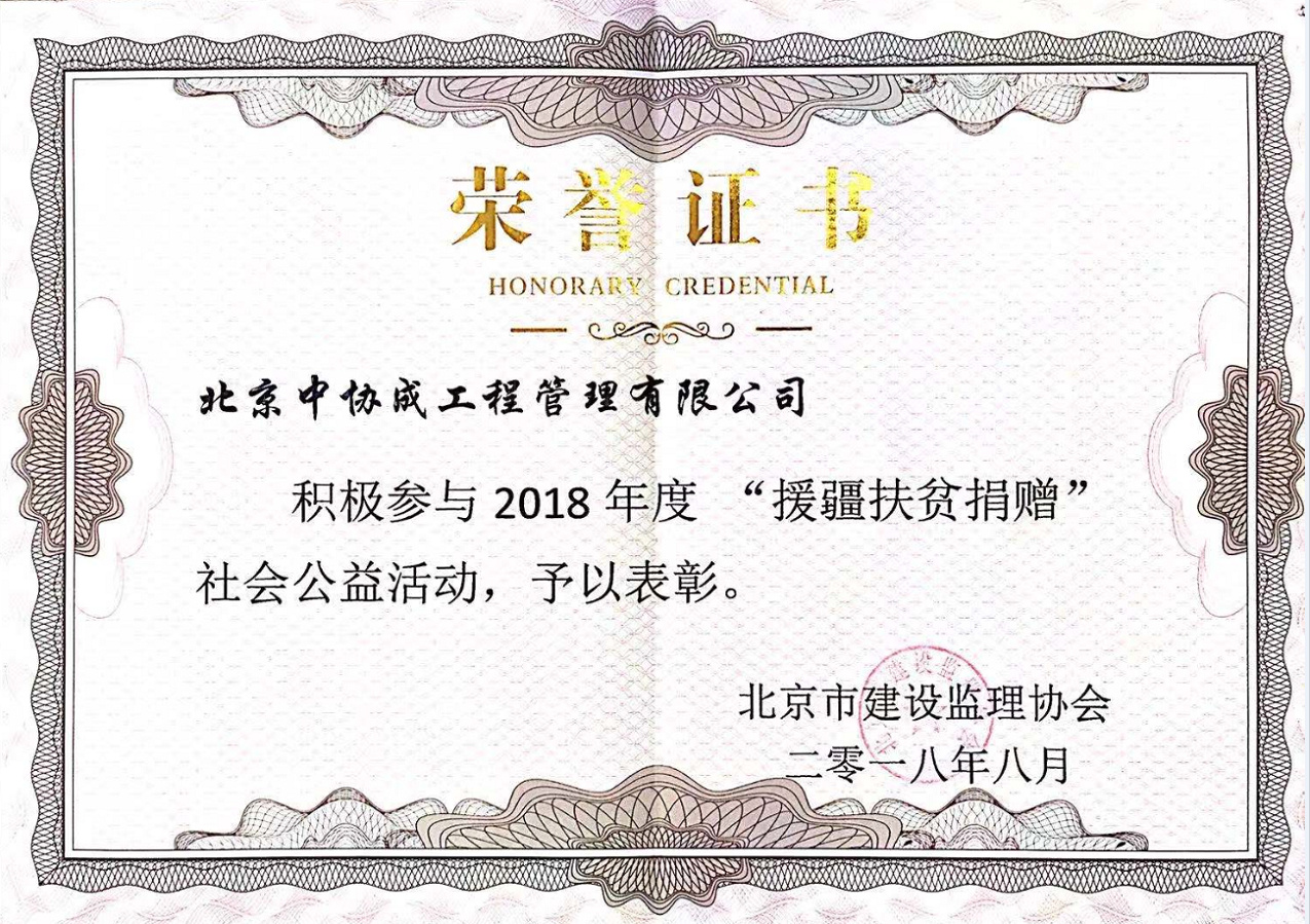 2018年度援疆扶贫捐赠公益活动荣誉证书