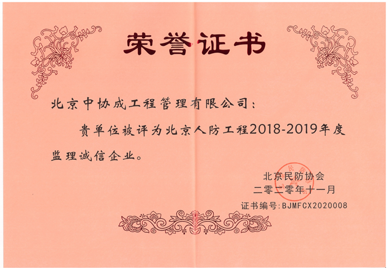您当前的位置:首页 > 公司荣誉 > 北京人防工程2018-2019年度监理诚信企业