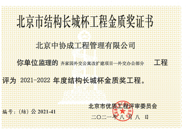 2021-2022年度结构长城杯金质奖-齐家园外交公寓改扩建项目