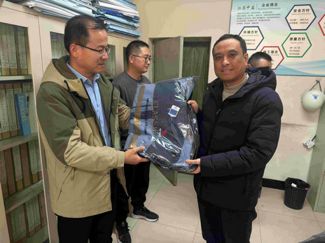 项目一线员工满怀欢喜地试穿工服,体验着身体的温暖,感受着心里的温暖,纷纷表达着喜悦与感动,以自己是中协成大家庭的一员而自豪、幸福和充满希望。